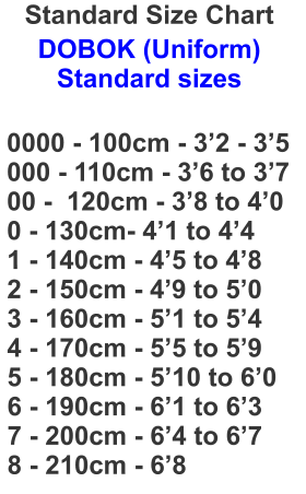 DOBOK (Uniform) Standard sizes